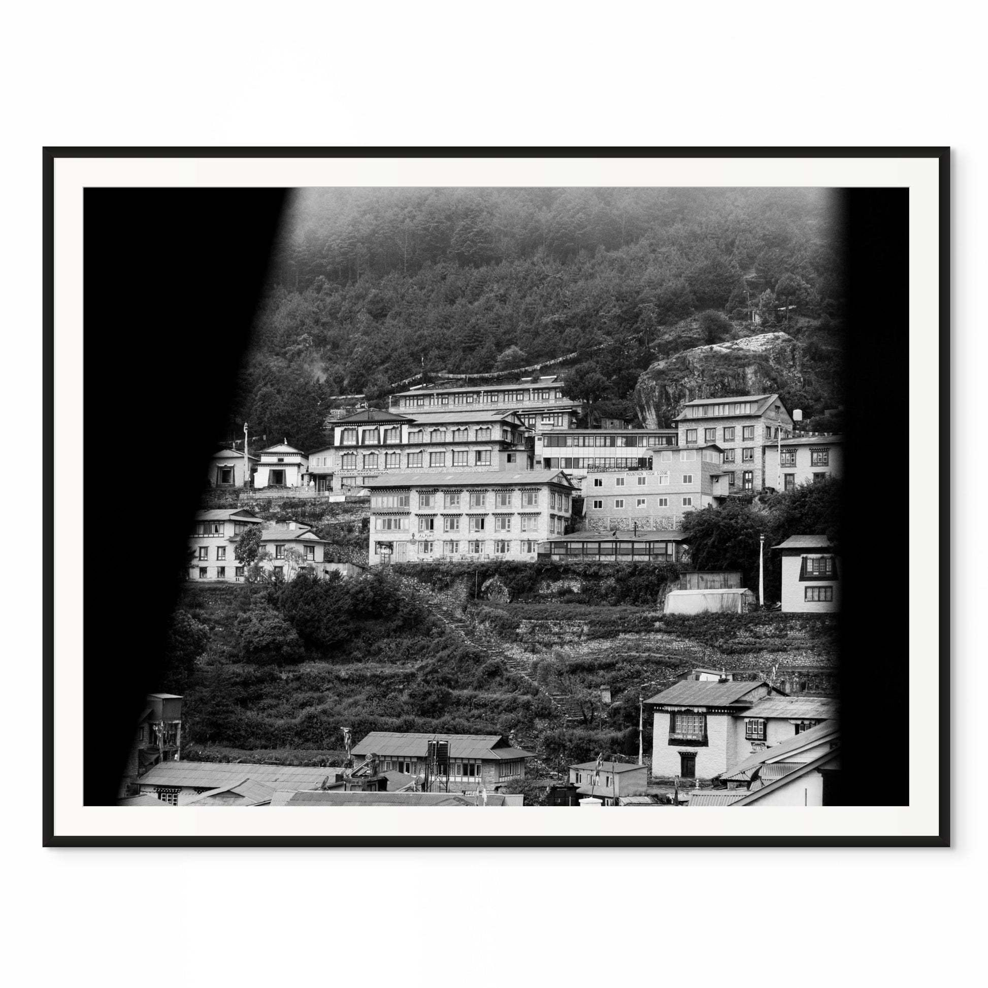 Pictured is Namche Bazaar, Nepal, a key acclimatization stop for climbers en route to Mt. Everest. Its steep hillsides are now dotted with new multi-story hotels and businesses, creating a vibrant hub where travelers from around the world gather to share stories, rest, and prepare for the journey ahead.